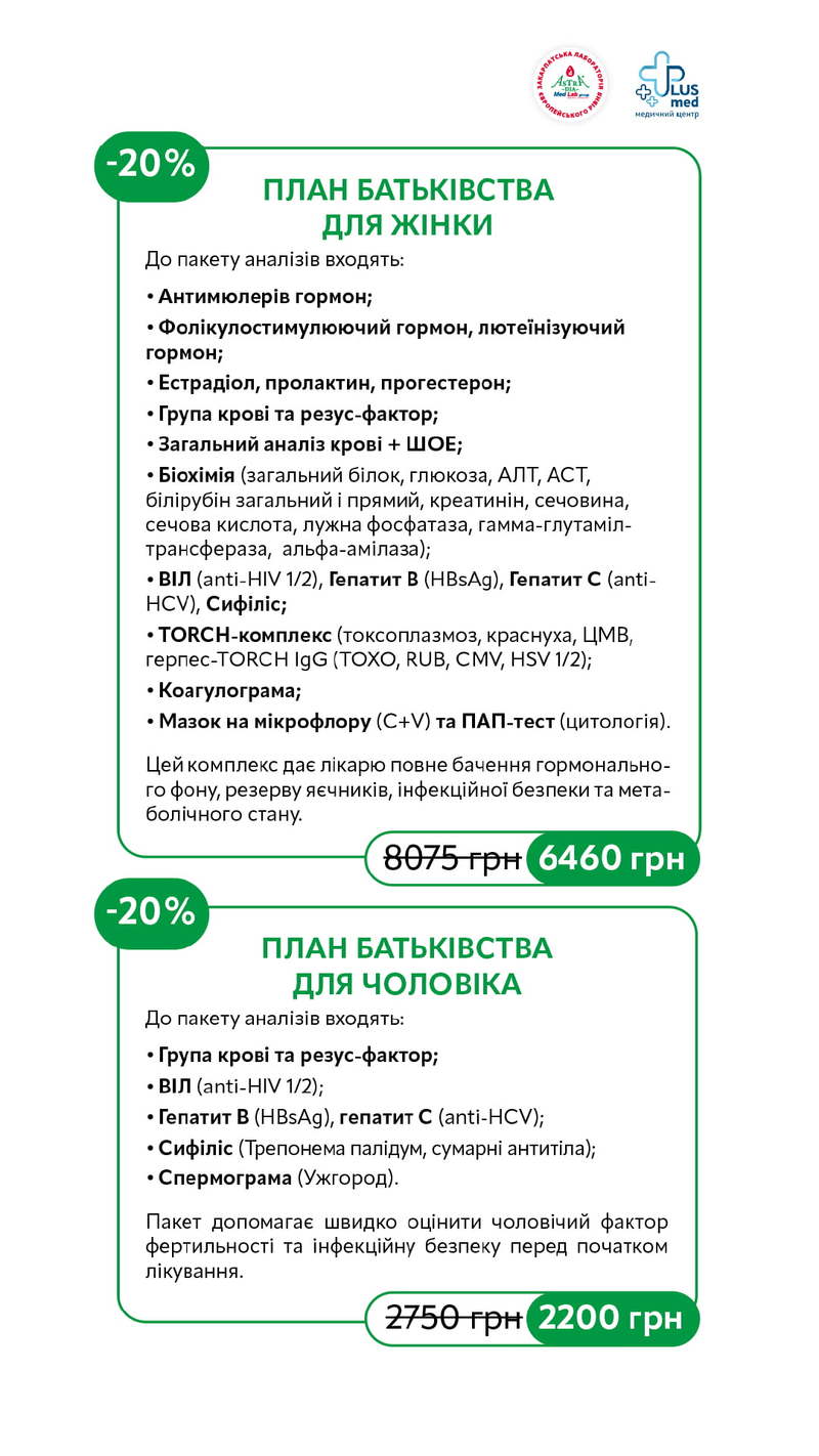 - Запишіться на безкоштовну консультацію репродуктолога в МЦ «Plusmed»;